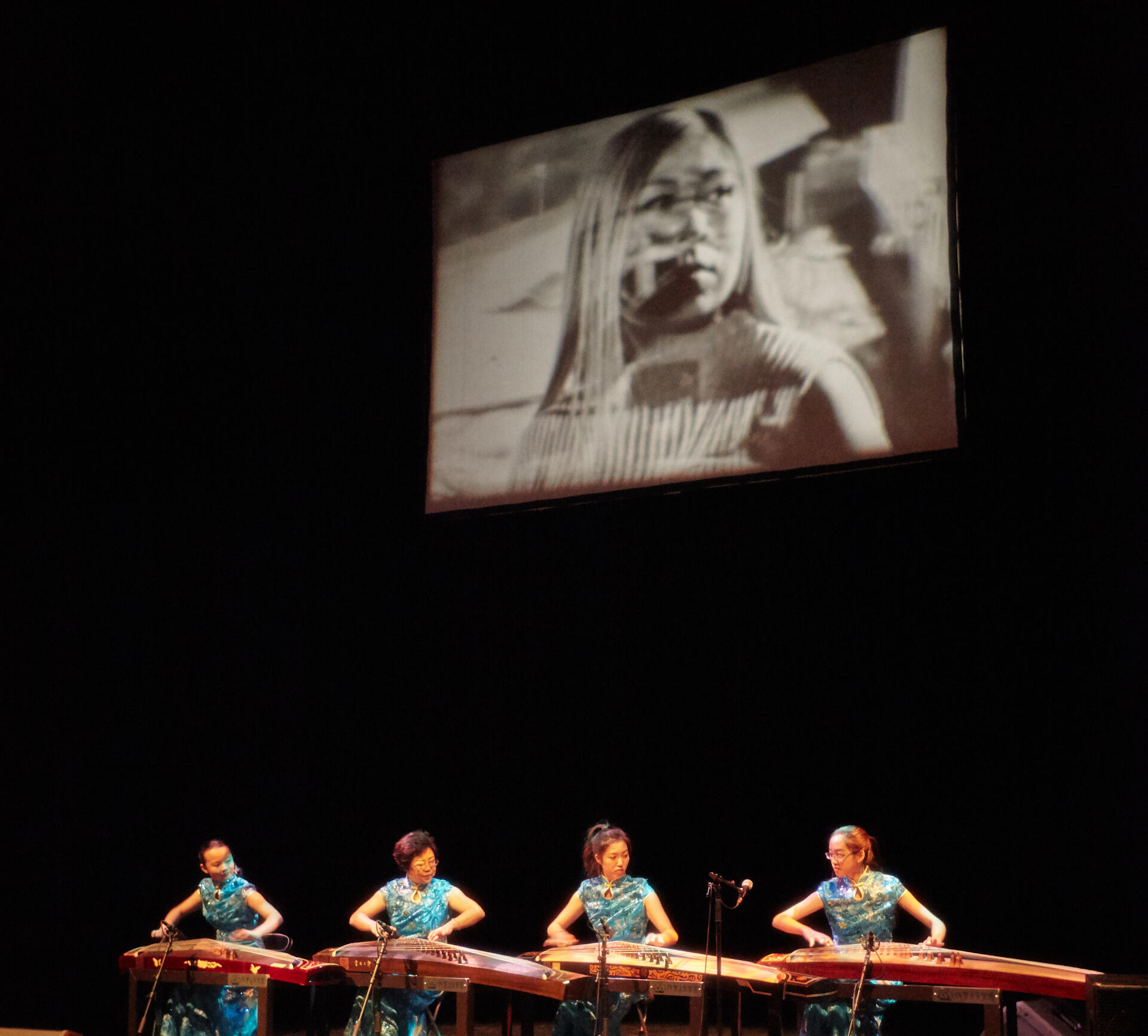 Fighting Against Typhoon (戰颱風) shows the power and beauty of the song and Guzheng instrument which is representative of the Chinese women of today. They fight the forces of society for political, economical, social and personal equality, while also protecting their family along the way. I used the typhoon as a metaphor for this story, capturing an internal struggle that happens everyday for women of colour.Utilizing news coverage of typhoon disasters in Asia, along with aerial images of typhoons from space, I projected the beautiful, yet ominous white swirls, onto the faces of the female members of my family and then shot on Super 8 celluloid film and painted over with colour ink washes.It was screened at the 2019 Artifact Small Format Film Festival with live music accompaniment by the Harmony Guzheng Ensemble playing 戰颱風 (Fighting Against Typhoon) by 王昌元 (Wang Changyuan).